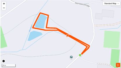 Der Start für die Jüngsten erfolgt auf der Sportplatzstraße Richtung Norden. Bereits nach wenigen Metern geht es scharf links weiter in Richtung Campingplatz. Nach einem kurzen Sprint über die Wiese verläuft die Strecke zwischen den beiden Vorfluterteichen hindurch und nach einer Runde um den vorderen Teich wieder zurück zum Start.